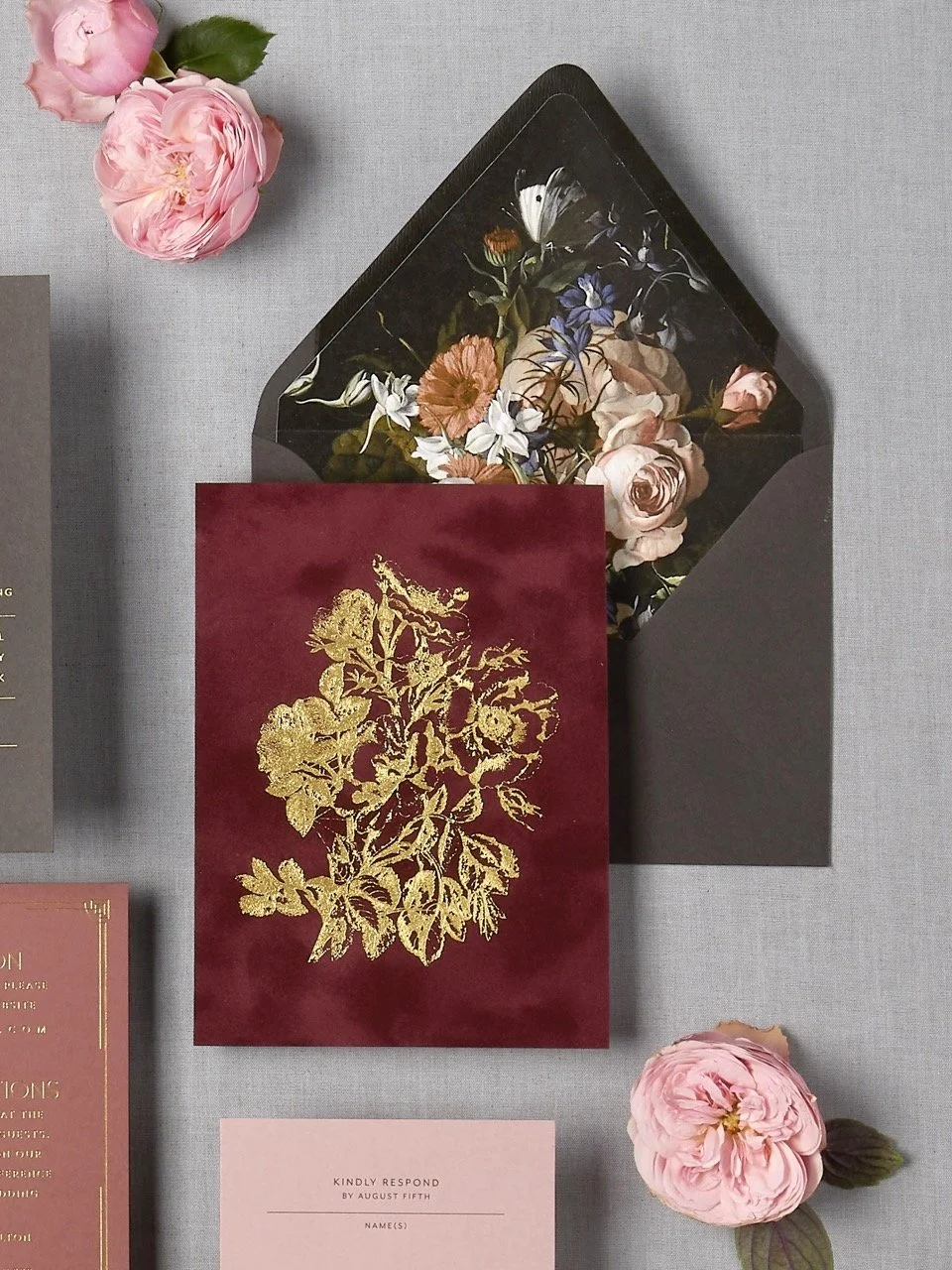 Your love story is uniquely yours. Let’s celebrate and commemorate the details and small moments that have gotten you here on paper. Let’s include a nod to the flowers you always buy each other, a hand-crafted monogram with your initials interlocking, the lace pattern of your grandmother’s wedding dress, or a nautical chart of where your wedding will take place.